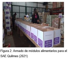 Durante la emergencia alimentaria provocada por la pandemia, se desarrolló una experiencia pionera5 de abastecimiento al SAE de Ensenada, coordinada por el Consejo Escolar local, con la participación de la Subsecretaría de Economía Popular de la Provincia, la Fundación La Base, el Instituto para la Producción Popular, la Cooperativa Despiertavoces, Central Cooperativa y la IU-EMF de la UNQ.