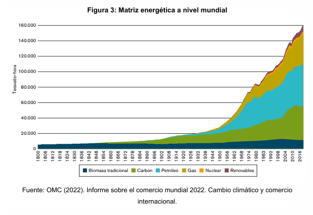 Tal como hemos visto a lo largo de este trabajo, Estados Unidos ya no es suficientemente extenso y dotado de recursos para controlar la economía mundial del siglo XXI, por ello disputa el acceso a energías y recursos estratégicos tanto con China como con la Unión Europea. En este siglo, la transición energética y el dominio sobre los recursos estratégicos emergen como temas centrales de la economía mundial, sector liderado por China, Estados Unidos y Alemania. El consenso sobre el problema del calentamiento global implica la necesidad de modificar el patrón energético, donde el 60% de las emisiones de gases de efecto invernadero provienen del consumo energético. Históricamente, la generación de energía ha estado basada en la explotación de combustibles fósiles, constituyendo el 92,4% de la energía utilizada, donde el 82% proviene del carbono. La vinculación entre el dióxido de carbono y la temperatura global explica la necesidad de reducir las emisiones, dado que el uso de combustibles fósiles representa el 40% de estos GEI (Svampa, 2022).