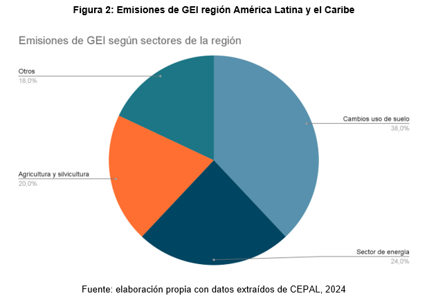 A pesar de la relativa baja contribución a las emisiones globales de GEI, por su posición geográfica y condición socioeconómica América Latina y el Caribe es altamente vulnerable a los efectos del cambio climático, especialmente a los eventos extremos. El número de desastres relacionados con el cambio climático presenta una tendencia creciente, así como también las personas afectadas, siendo las sequías la causa de la mayor proporción de afectados (46%) en la región (De Miguel et al., 2024).
