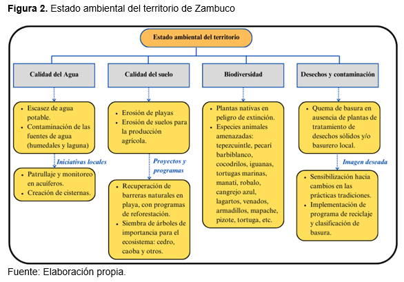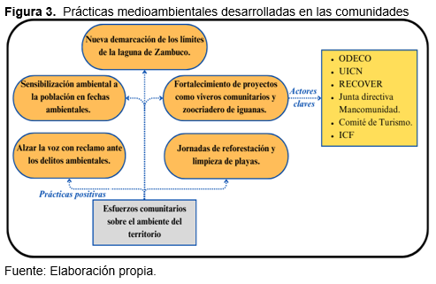 Por otro lado, los esfuerzos comunitarios en Zambuco, como las iniciativas de reforestación y limpieza de playas, pueden interpretarse dentro del marco de la gobernanza ambiental. En comunidades vulnerables, estos esfuerzos de base actúan como catalizadores para el cambio hacia la sostenibilidad (Silva et al., 2022). Sin embargo, los resultados de estas iniciativas también reflejan las limitaciones impuestas por la falta de un marco normativo adecuado y de infraestructura institucional. Los esfuerzos locales no siempre logran el impacto esperado debido a la escasa respuesta de las autoridades (Rivera, 2023).